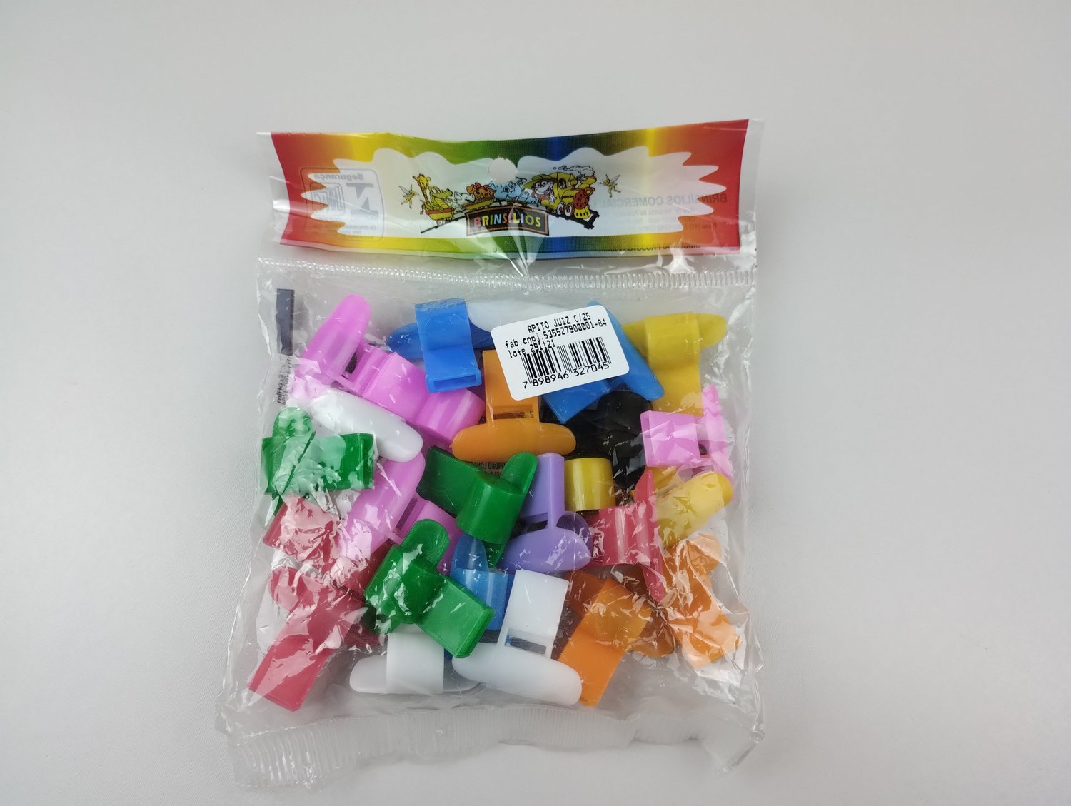 Medidas aproximadas de cada apito: 3 cm de altura x 3 cm de largura