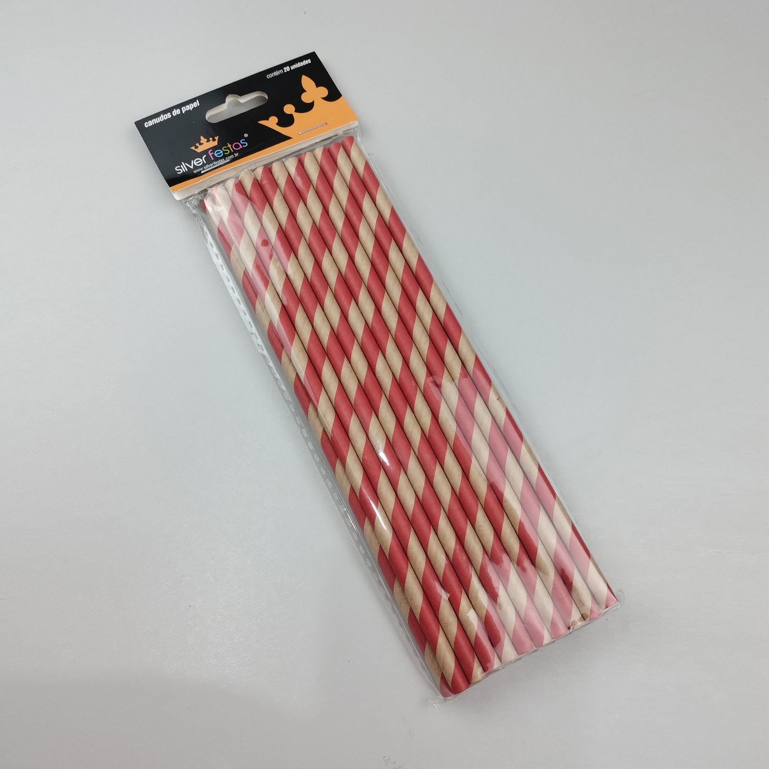 Canudo Kraft descartável de papel C/20 – Vermelho - 6mm – Silver Festas