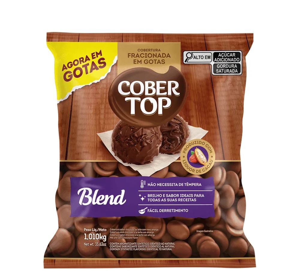 A cobertura Blend é uma mistura de ao leite com meio amargo. Não é tão doce e nem tão amargo, agradando o paladar da maioria das pessoas.