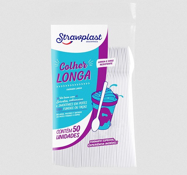 Colher Longa Branca para Açaí com 50 un. - Strawplast