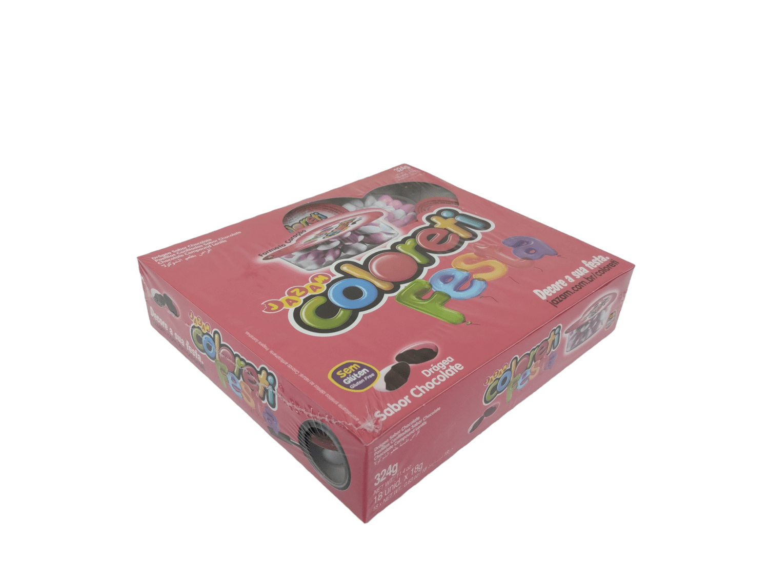 INGREDIENTES: AÇÚCAR, GORDURA VEGETAL FRACIONADA, CACAU EM PÓ, MASSA DE CACAU, GLICOSE, MALTODEXTRINA, SAL, EMULSIFICANTE LECITINA DE SOJA (INS 322), CORANTE INORGÂNICO DIÓXIDO DE TITÂNIO (INS-171), CORANTE ARTIFICIAL ERITOSINA (INS 127), GLACEANTE CERA DE CARNAÚBA (INS 903) E AROMATIZANTES.