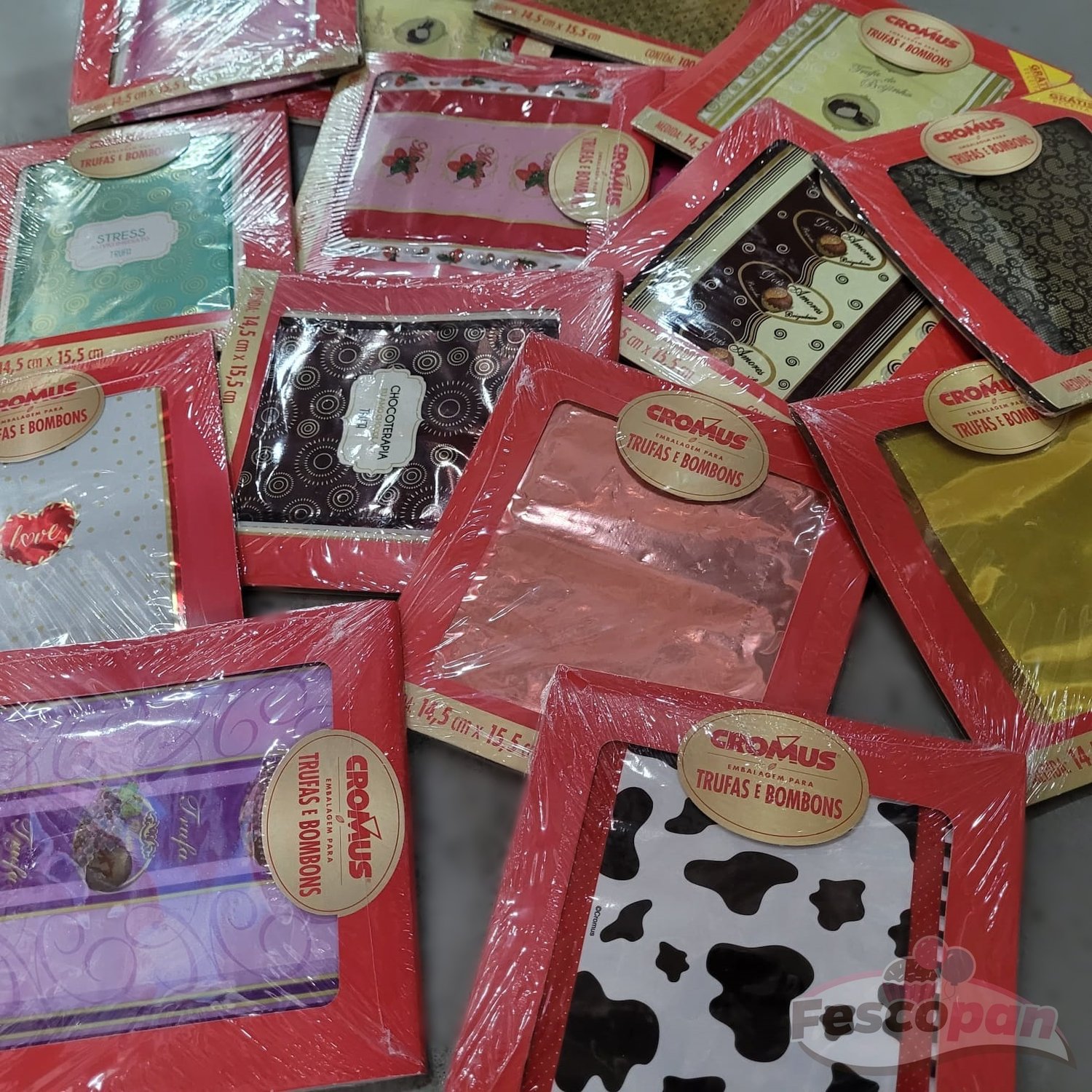 Embalagem para envolver trufas e bombons. Possui uma camada de papel chumbo (alumínio) dentro da película plástica, o que possibilita uma melhor proteção ao seu doce.