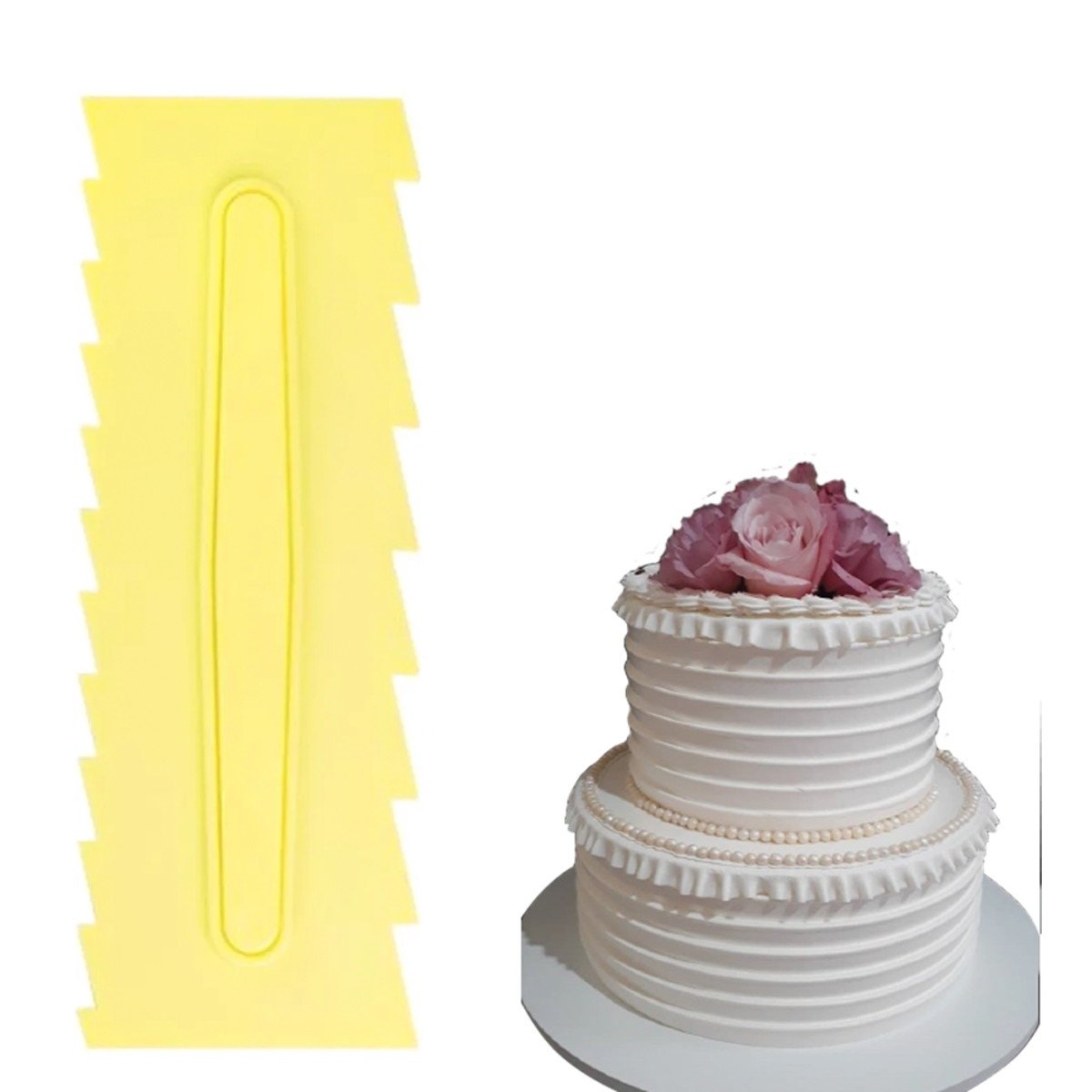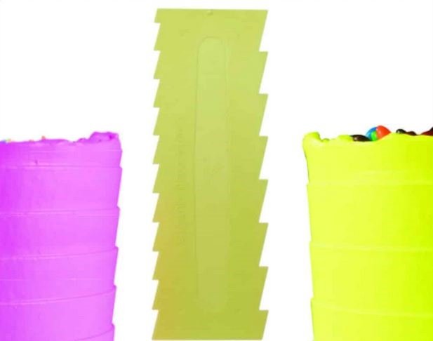 Espátula para decoração e modelagem das laterais de bolos e tortas com coberturas leves.