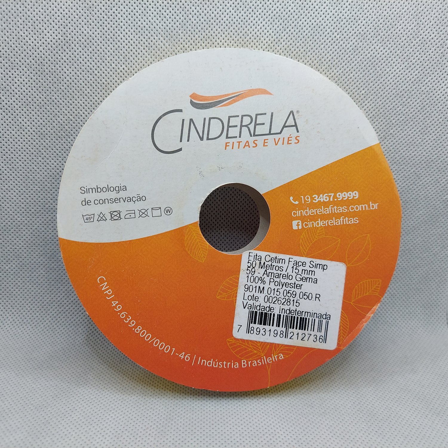 Fita Cetim Simples 15mm x 50m Amarelo Gema – Cinderela