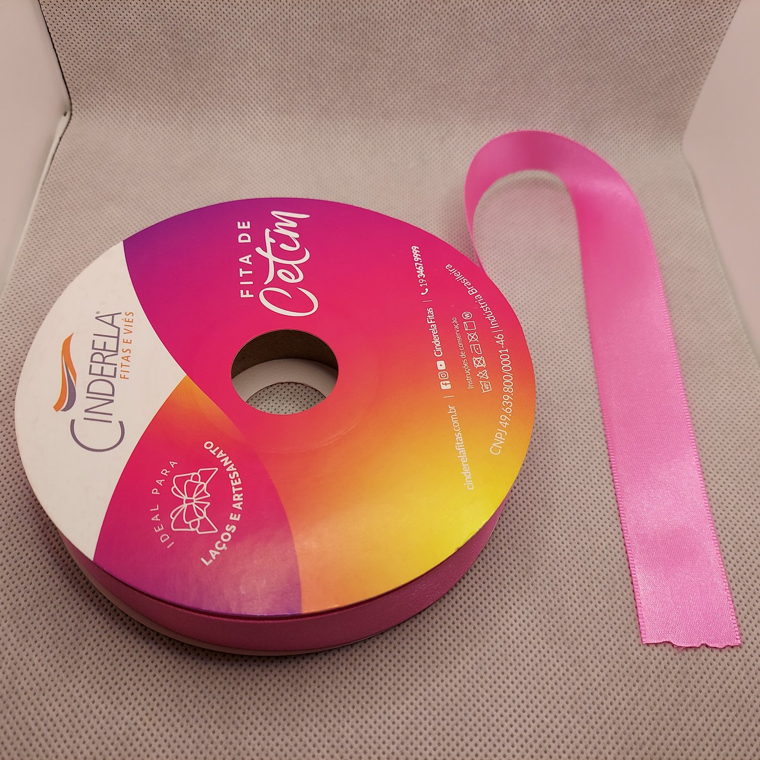 Fita Cetim Simples 22mm x 50m Rosa Chiclete – Cinderela