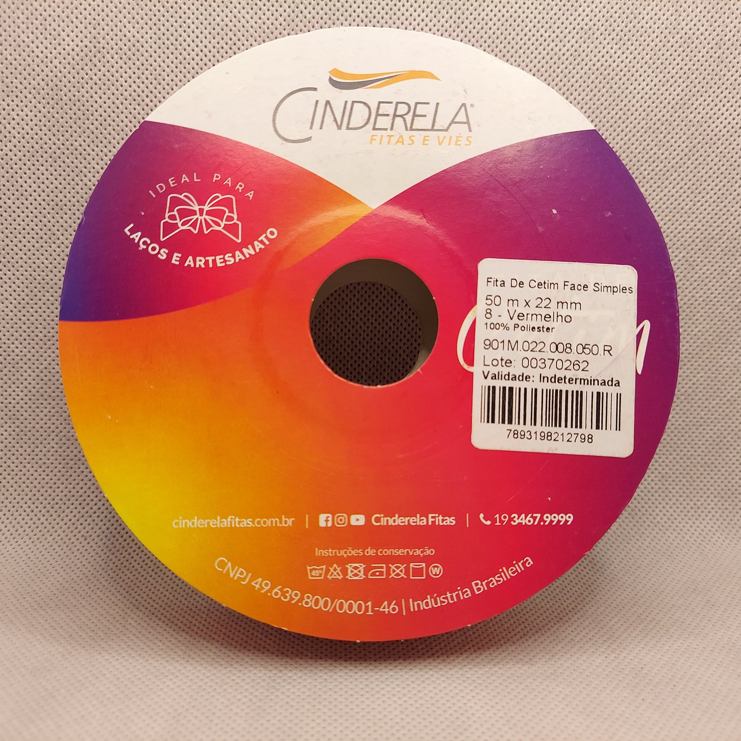 Fita Cetim Simples 22mm x 50m Vermelho – Cinderela