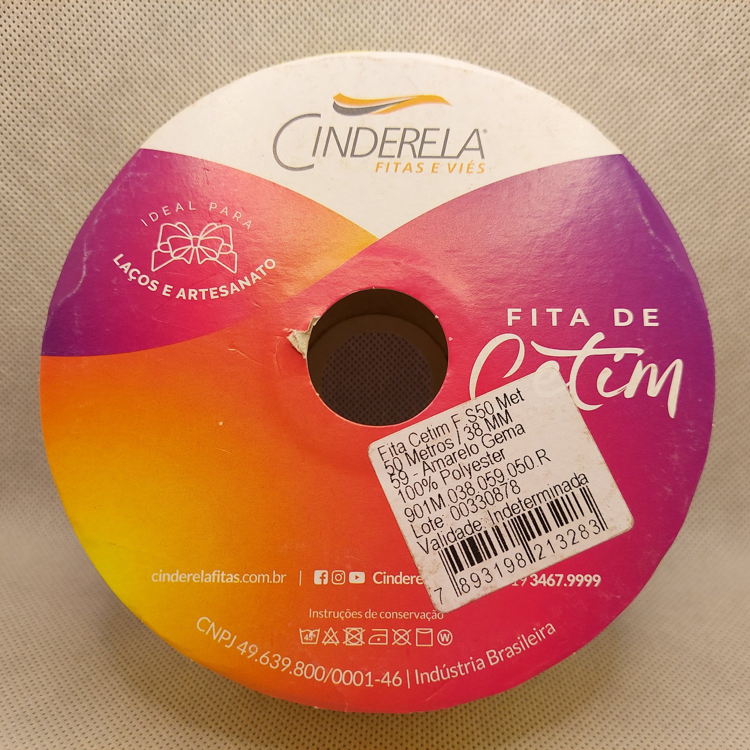 Fita Cetim Simples 38mm x 50m Amarelo Gema – Cinderela