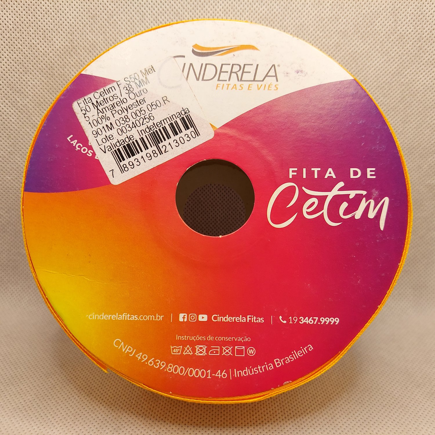Fita Cetim Simples 38mm x 50m Amarelo Ouro – Cinderela