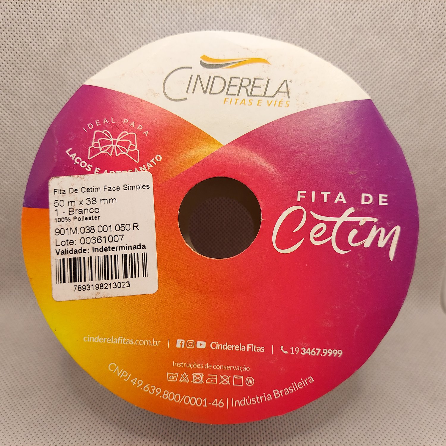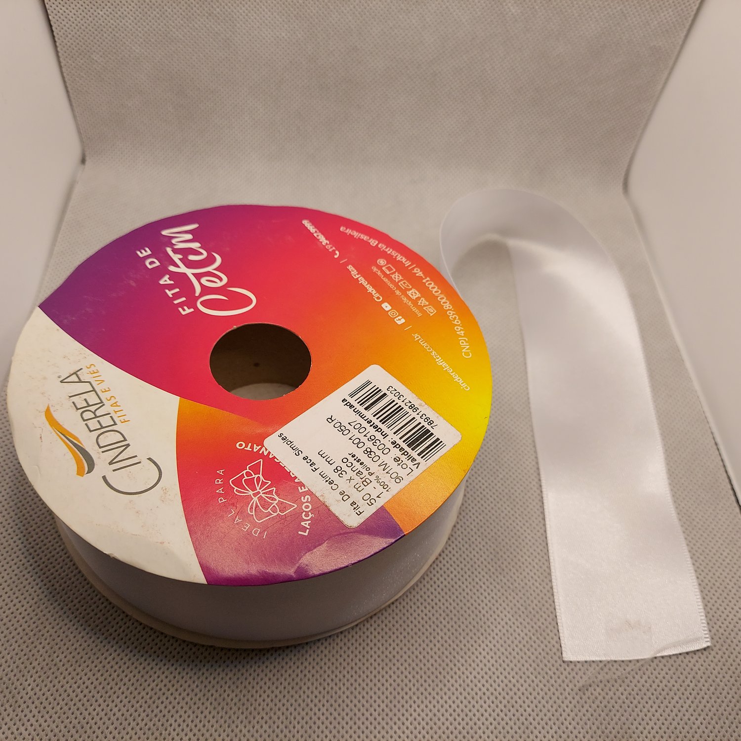 Fita Cetim Simples 38mm x 50m Branca – Cinderela