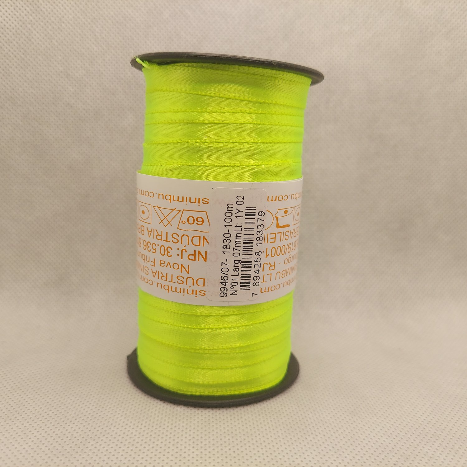 Fita Cetim Simples 7mm x 100m Verde Flúor – Sinimbu