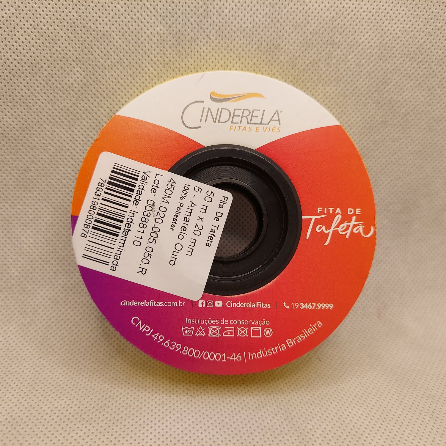 Fita Tafetá Simples 20mm x 50m Amarelo Ouro – Cinderela