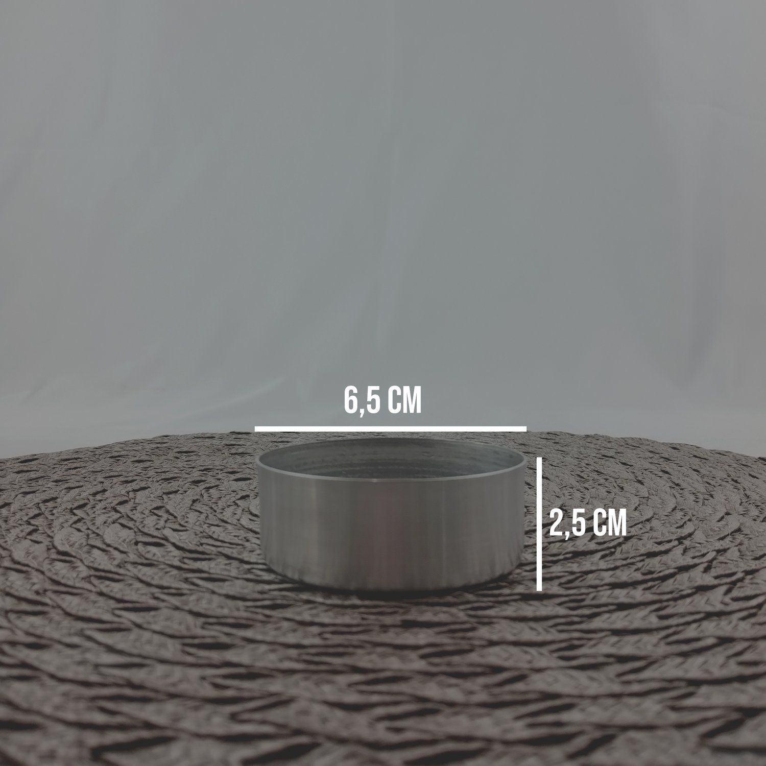Diâmetro: Fundo 6,5 x Altura 2,5 x Boca 6,5 cm