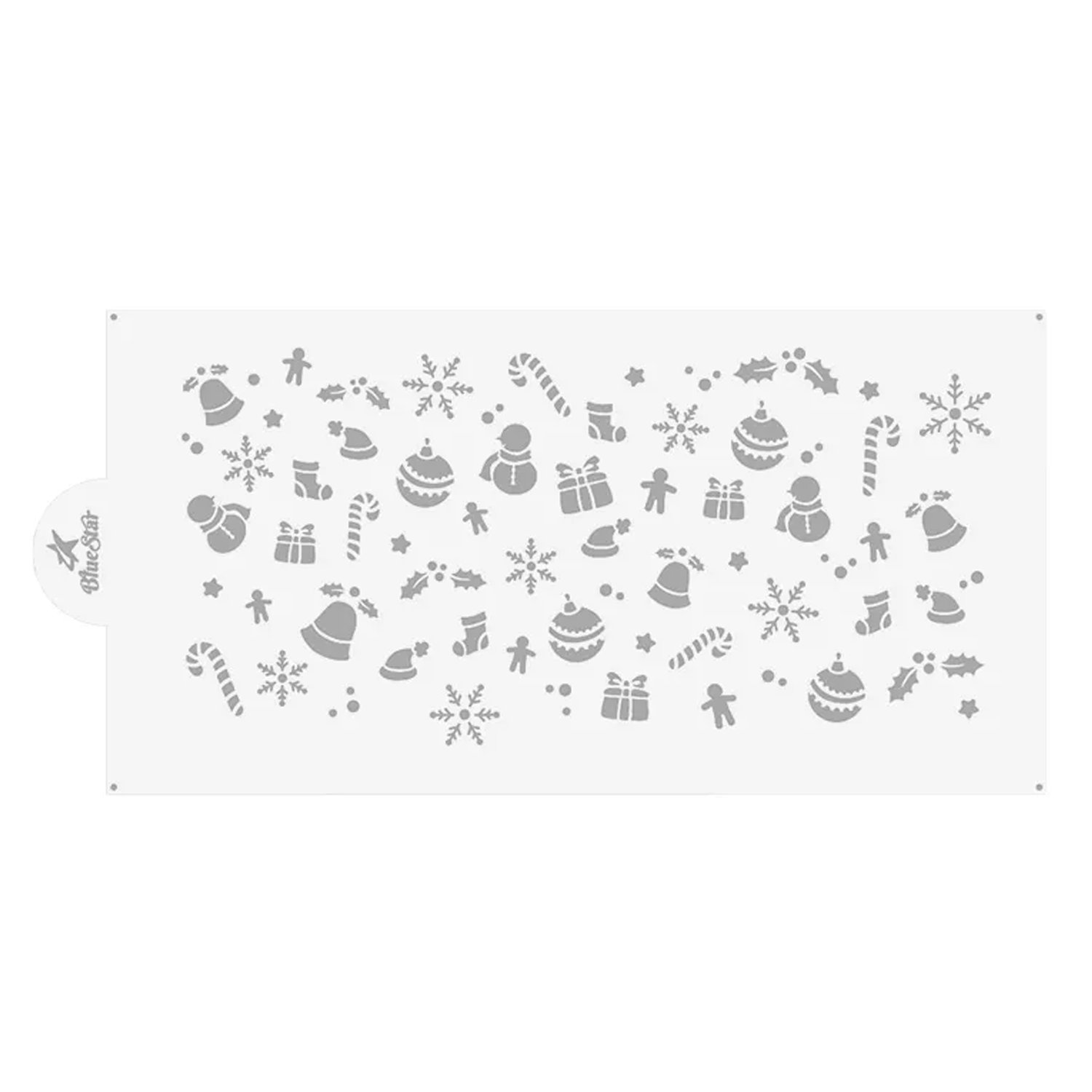 Esse Stencil Natal Sortido , deixará suas receitas ainda melhores. Com desenhos de linhas trançadas com mini corações espalhados, este estêncil é delicado e perfeito para decorar pães de mel, macarons, bolos, biscoitos, tortas e muito mais. Este produto é quadrado com aproximadamente 32cm de comprimento, com rotação de 360° para decorar ao redor de todo o bolo. Seu material é de plástico poliestireno, sendo atóxico e reutilizável. Para uma durabilidade maior, aconselha-se lavar o estêncil somente com água fria e sabão. Não usar solventes ou água quente, o calor pode danificar o produto. Além disso, a secagem deve ser feita apenas com folhas de papel seco e deve ser armazenado em locais onde não será amassado ou dobrado.
