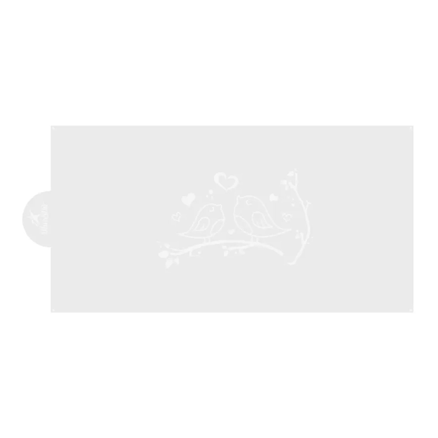 Esse Stencil Pombinhos, deixará suas receitas ainda melhores. Com desenhos de linhas trançadas com mini corações espalhados, este estêncil é delicado e perfeito para decorar pães de mel, macarons, bolos, biscoitos, tortas e muito mais. Este produto é quadrado com aproximadamente 32cm de comprimento, com rotação de 360° para decorar ao redor de todo o bolo. Seu material é de plástico poliestireno, sendo atóxico e reutilizável. Para uma durabilidade maior, aconselha-se lavar o estêncil somente com água fria e sabão. Não usar solventes ou água quente, o calor pode danificar o produto. Além disso, a secagem deve ser feita apenas com folhas de papel seco e deve ser armazenado em locais onde não será amassado ou dobrado.