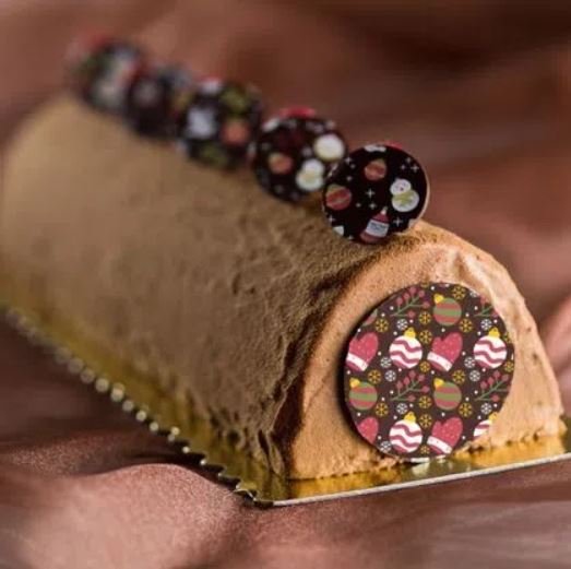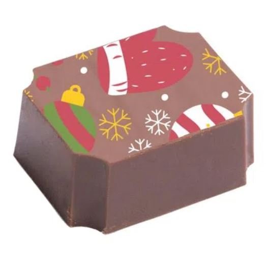 - banhar o doce com chocolate, aplicar o transfer. Após a cristalização levar para a geladeira;