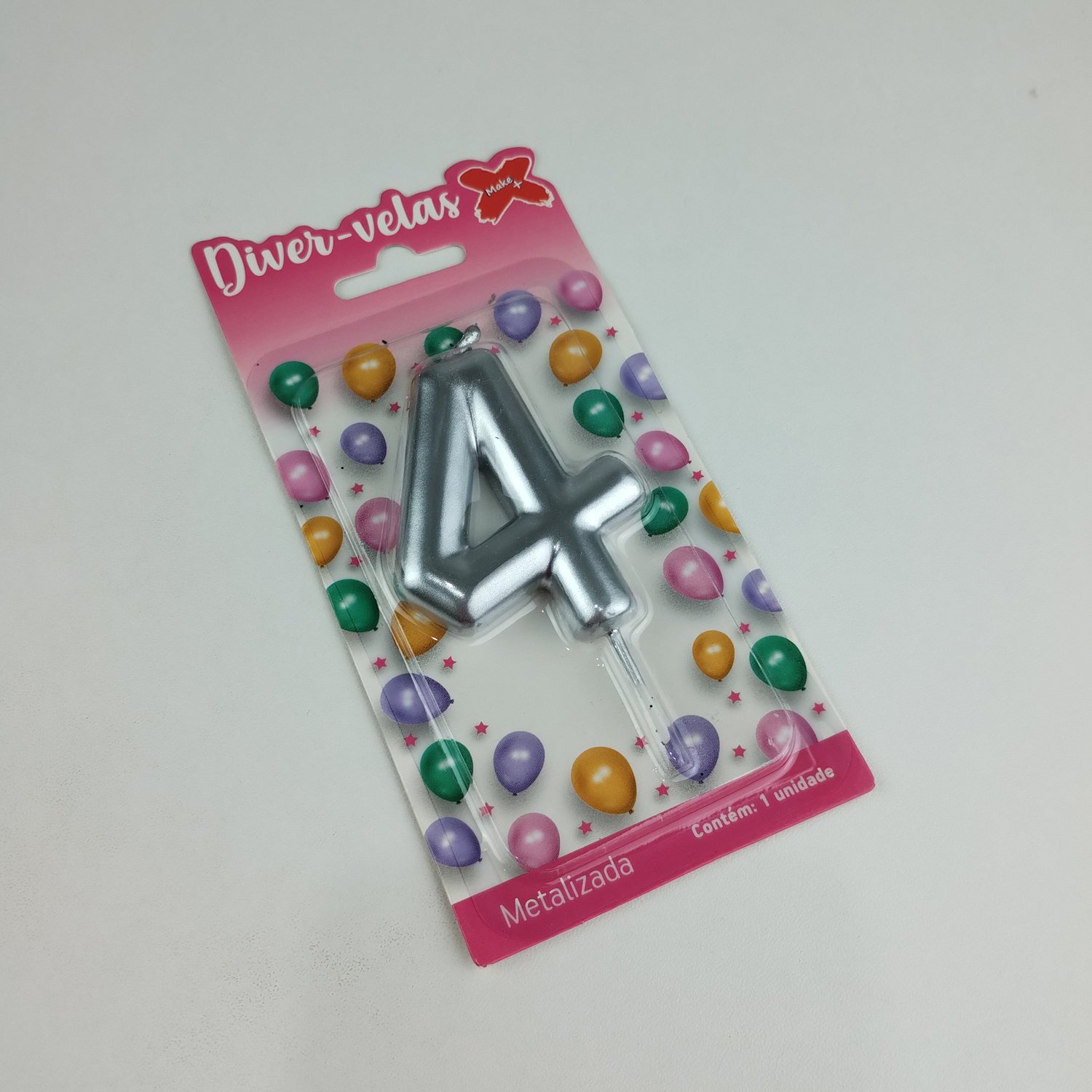 Vela Metalizada Prata - N°4 – 6cm – Make+