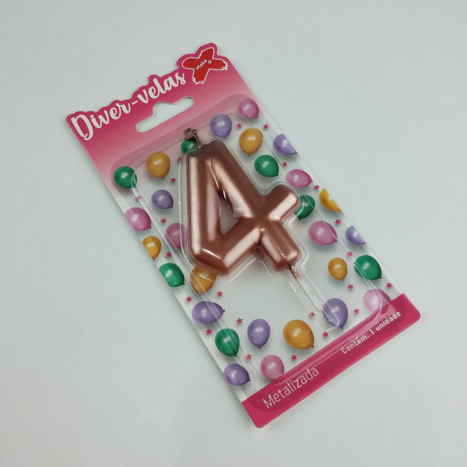 Vela Metalizada Rose Gold - N°4 – 6cm – Make+